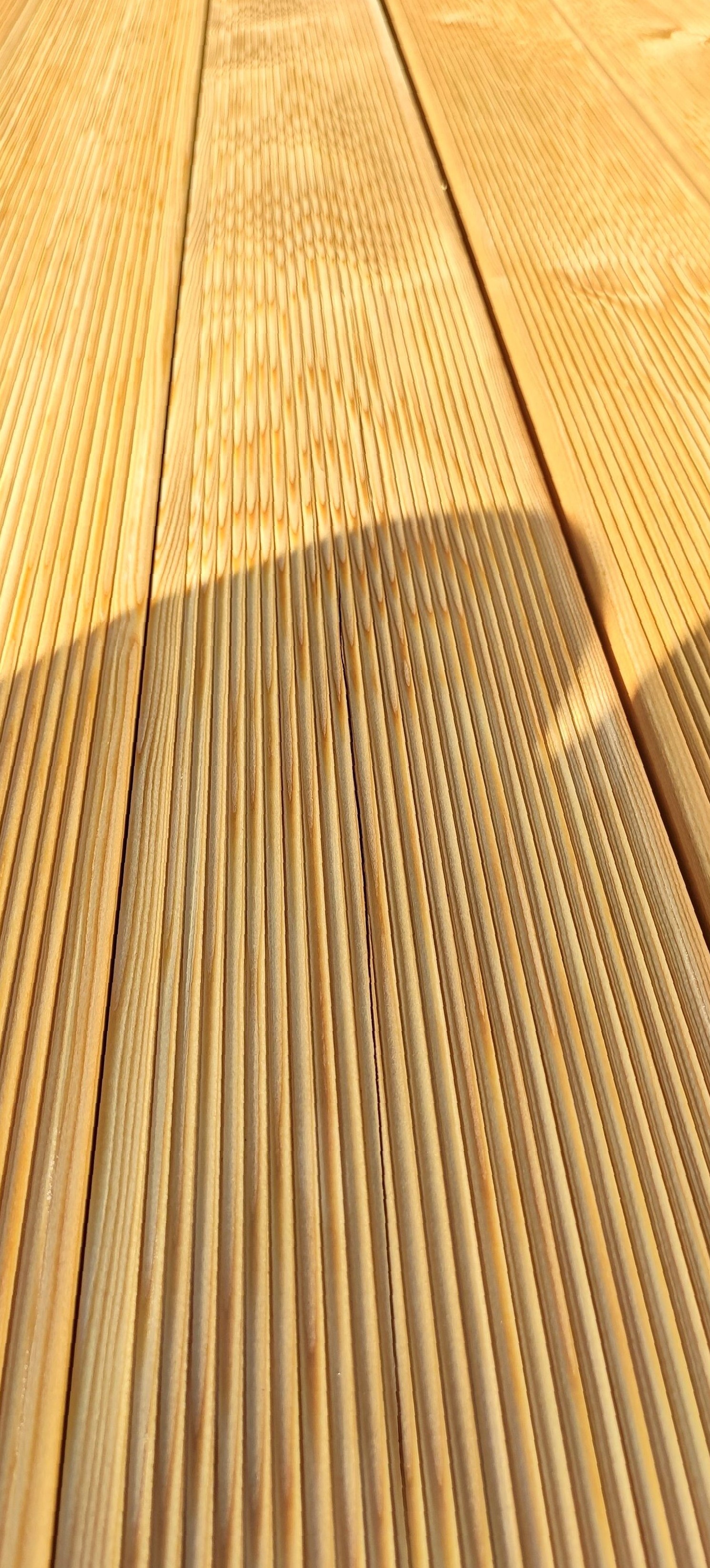 Террасная доска (лиственницы, сорт C) сечением 28x142 мм. Высокая плотность и природная смолистость делают этот материал устойчивым к влаге, грибку и механическому износу. Идеально для веранд, беседок и зон у бассейна.